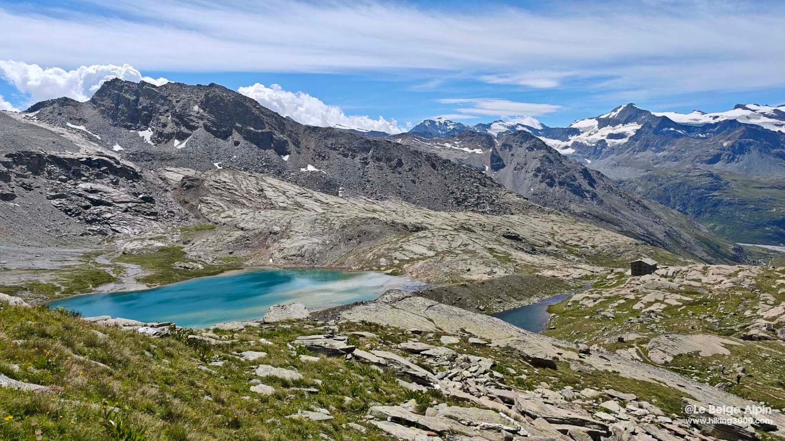 Le sentier monte franchement mais sans piège, on progresse dans les alpages puis on passe dans le minéral. Les gardiens sont accueillants, on a bu un coup et repris des forces avant d’attaquer la suite. Le refuge offre des panoramas splendides sur les glaciers de l’Albaron et la crête frontière des Levanna — à lui seul, il vaudrait déjà le déplacement.