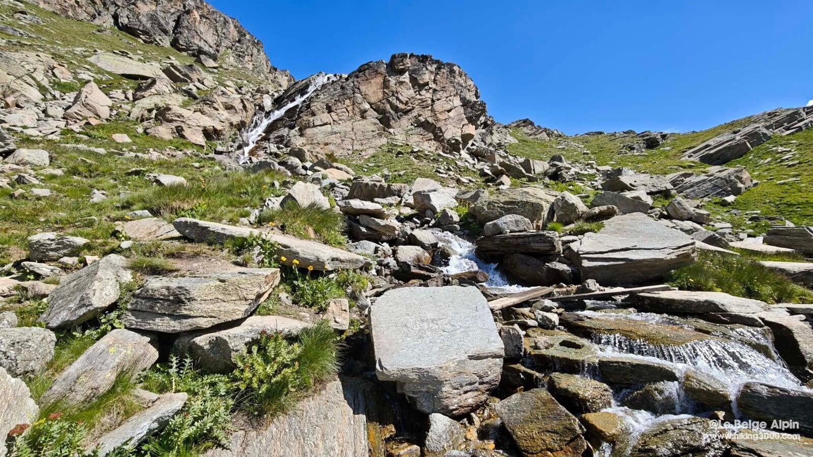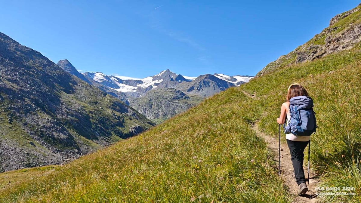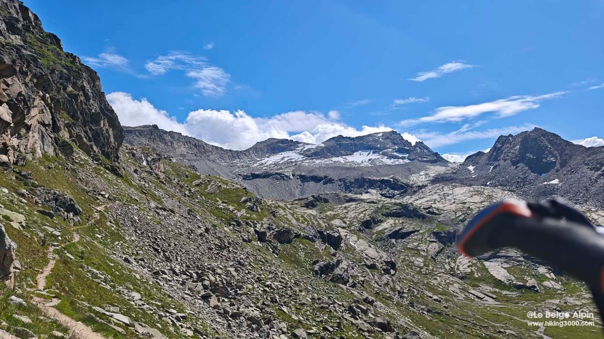 Du refuge au col, il reste 400 m de D+ et le décor bascule complètement. Pierrier instable, moraine mouvante : aucun passage technique au sens alpinisme, mais une vraie attention pour éviter les glissades. Sentier qui serpente, on pose les pieds avec méthode.