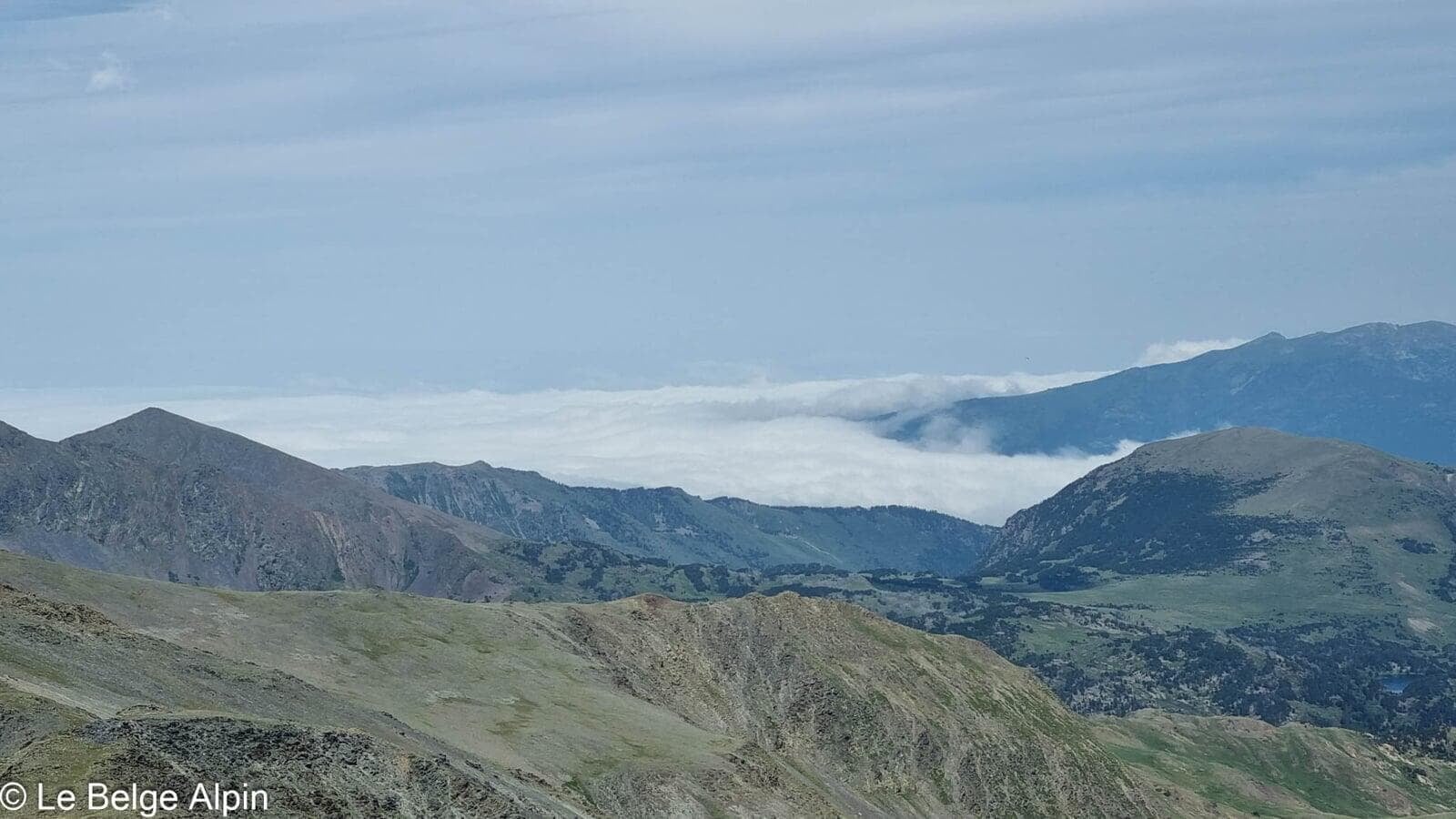 Au sommet, une croix sommitale décorée d’offrandes, d’autocollants, de petits objets laissés par les randonneurs précédents. À 2921 m, on voit loin : la plaine de la Cerdagne au sud, l’Andorre à l’ouest, et par temps clair, la Méditerranée côté est. Une des vues les plus ouvertes des Pyrénées orientales.
