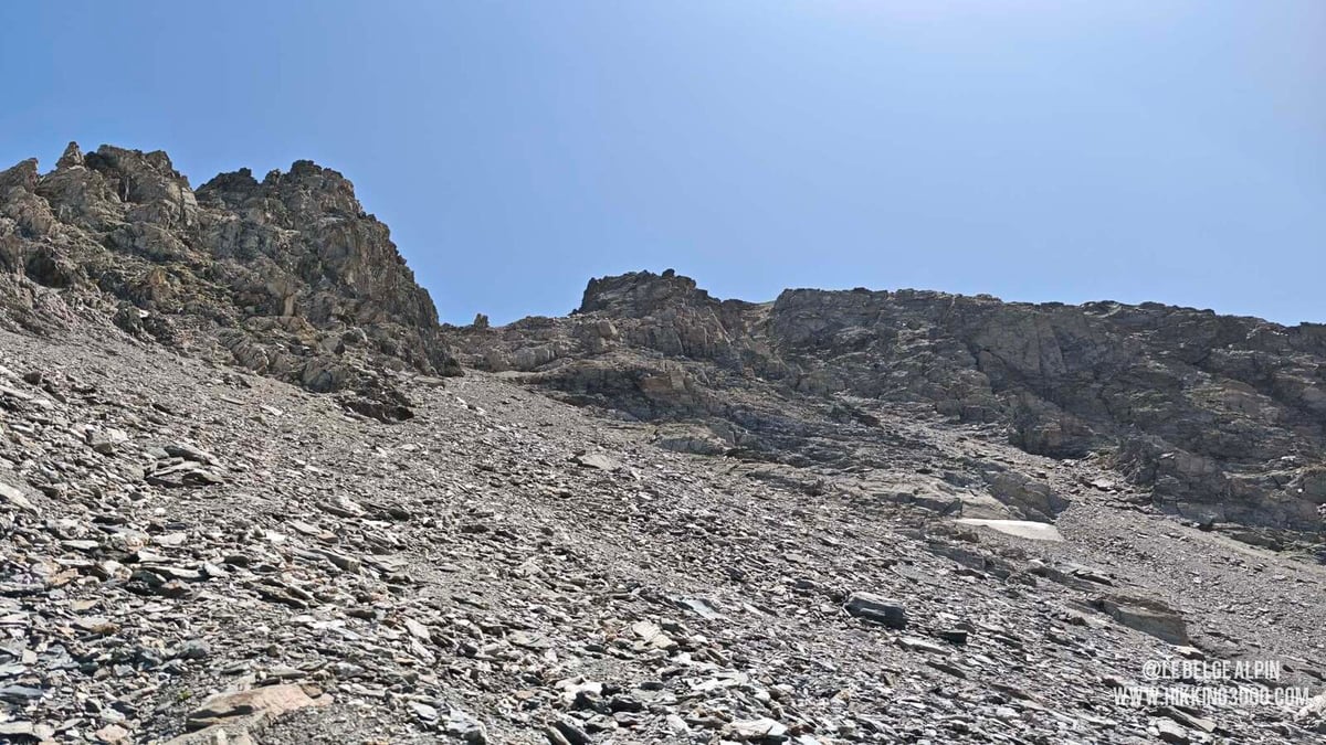 Les 50 derniers mètres sont en II (escalade facile), avec une belle exposition. Aucune technique de corde nécessaire, mais il faut être à l'aise sur le rocher et savoir désescalader. Si vous hésitez sur du II, arrêtez-vous avant la dernière section.