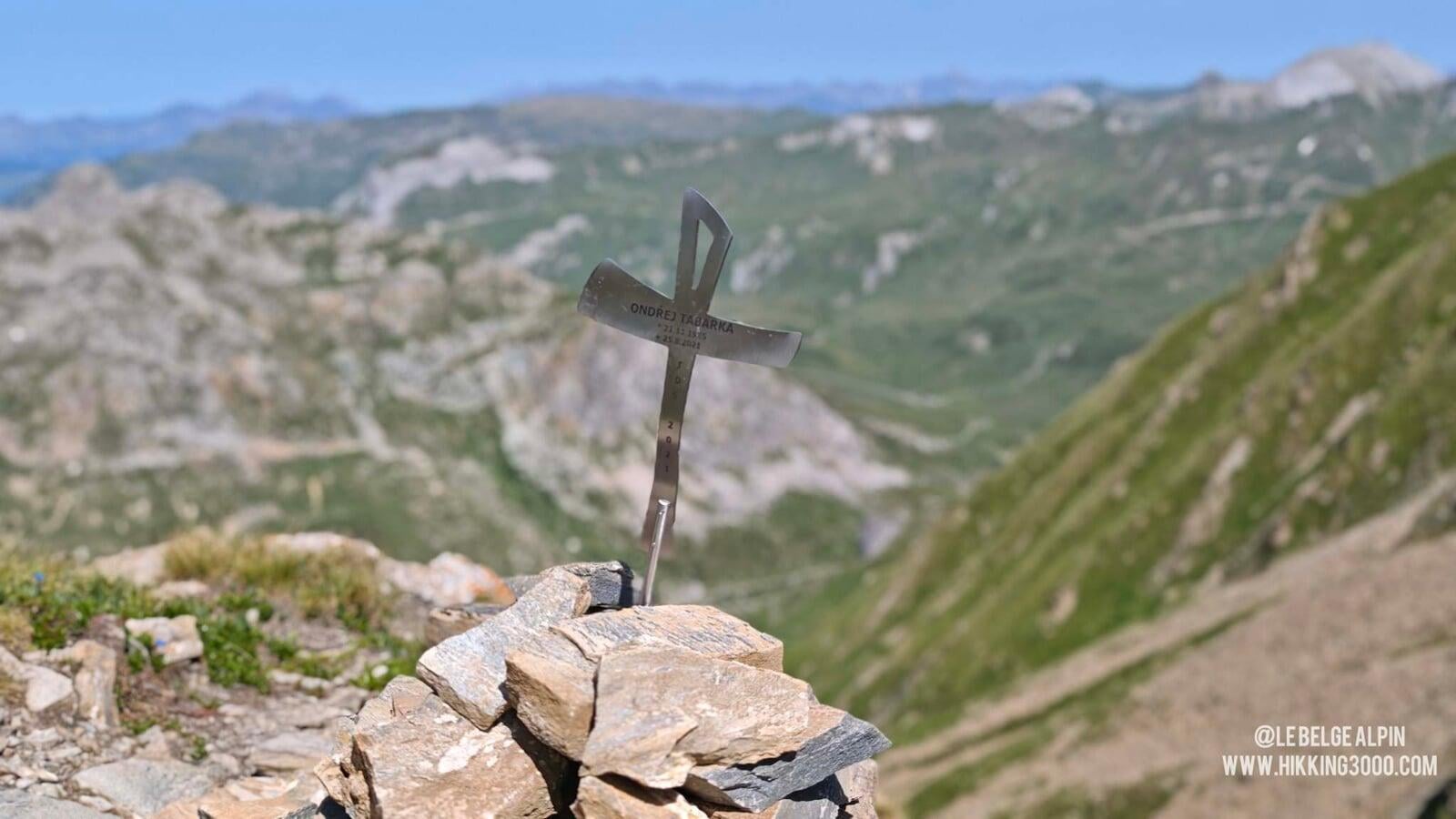 Au sommet, un détail m’a marqué : une croix commémorative gravée au nom d’Ondřej Tabarka (25.8.2021). Un rappel que ce terrain, même en été sec, reste exigeant. Un instant de pensée, et on redescend avec un peu plus de concentration.