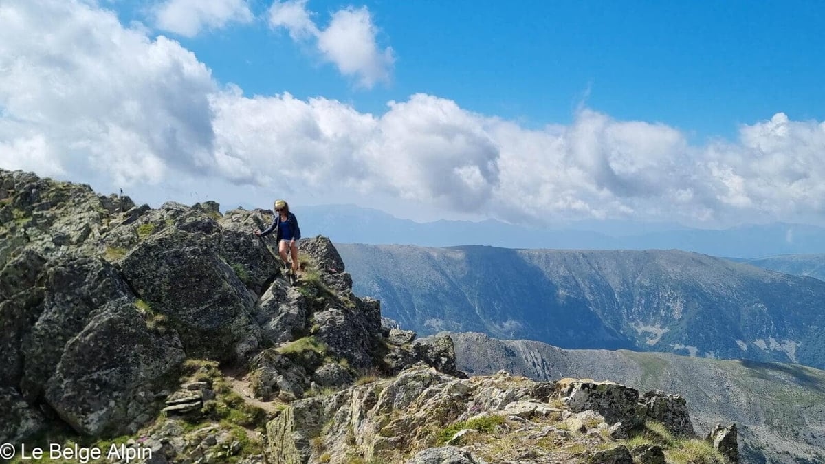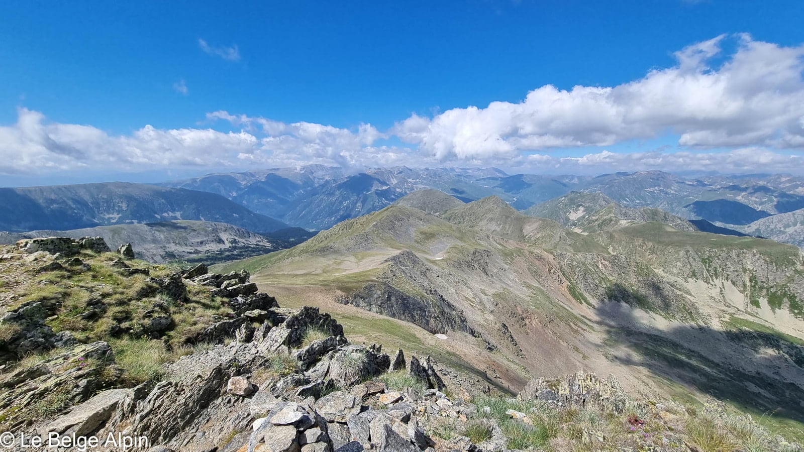 Vers 2500 m, on quitte le vert pour le minéral, et la vue commence à s’ouvrir dans toutes les directions. Pas de difficulté technique : le sentier est clair, marqué par endroits par des cairns. L’arête finale fait un peu respirer, un peu désescalader, mais rien d’inquiétant pour qui a le pied de montagne.