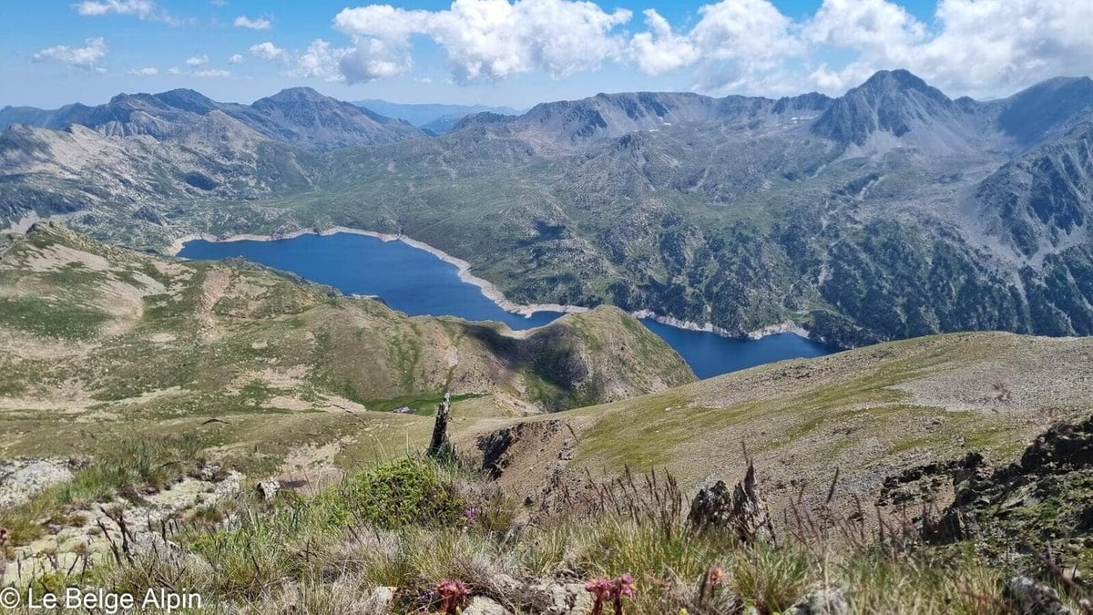 Au sommet, le panorama est vaste et paisible. Côté Andorre, les étangs bleu profond scintillent entre deux crêtes. Côté France, la vallée de l’Ariège se devine, avec en toile de fond les sommets d’Ax-les-Thermes et au-delà. Par temps clair, on aperçoit même les plus hauts sommets des Pyrénées centrales, en lointain.